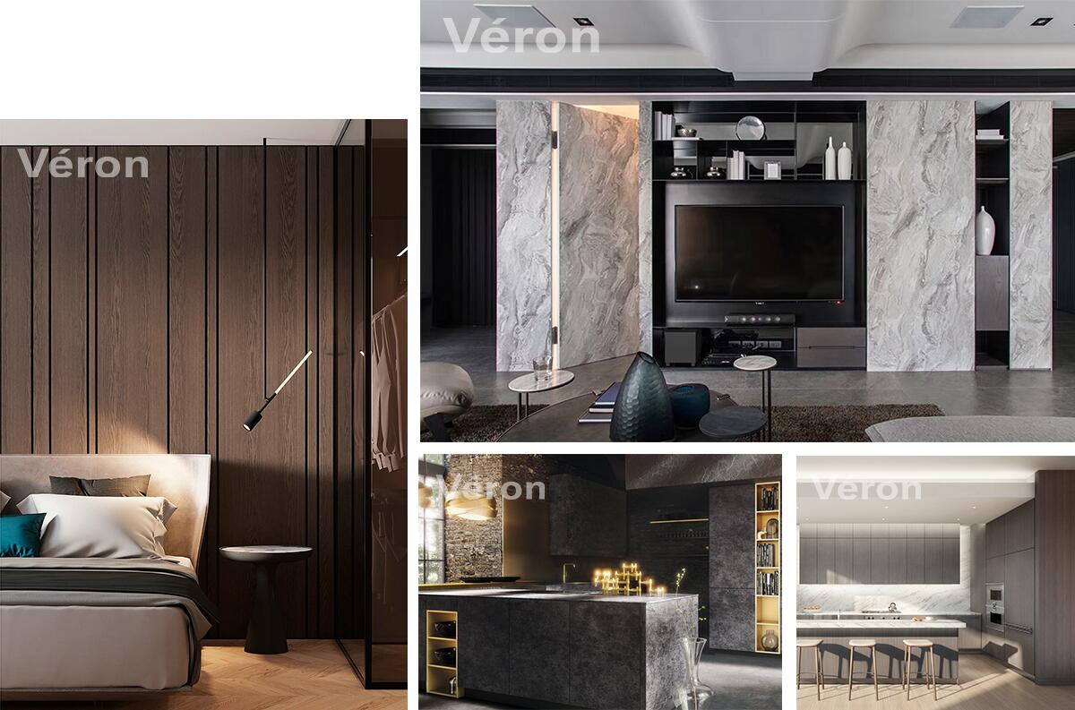 > 適用空間:開(kāi)放衣帽間、電視柜等開(kāi)放柜體背板使用、整體大挑高空間裝飾墻、廚房島臺(tái)臺(tái)面、櫥柜墻面背景等。完美的適用于家庭住宅環(huán)境和酒店公共區(qū)域。
